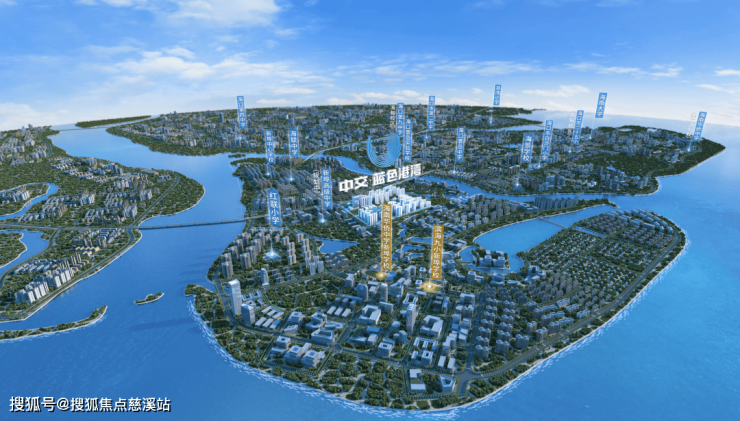 中交·蓝色港湾占位新埠岛中芯地带,规划范围近 700 亩,建设体量近100万方,建成后将承担商旅文创、活力休闲、滨海居住等功能,同时保留新埠岛在地文化及老海口特色风情,按照 “一心、两轴、三片区”的空间结构规划建设,筑就集创意办公、精品商街、高端居住、优质教育、滨水景观为一体的大型品质社区。
