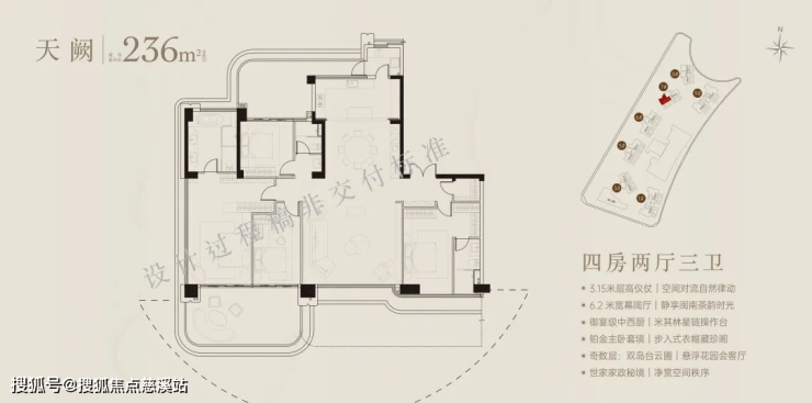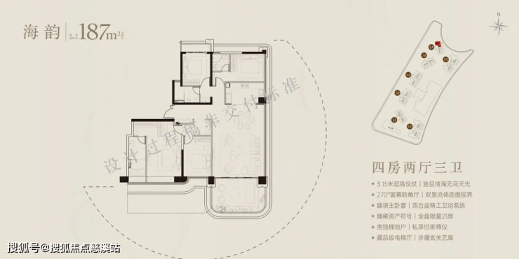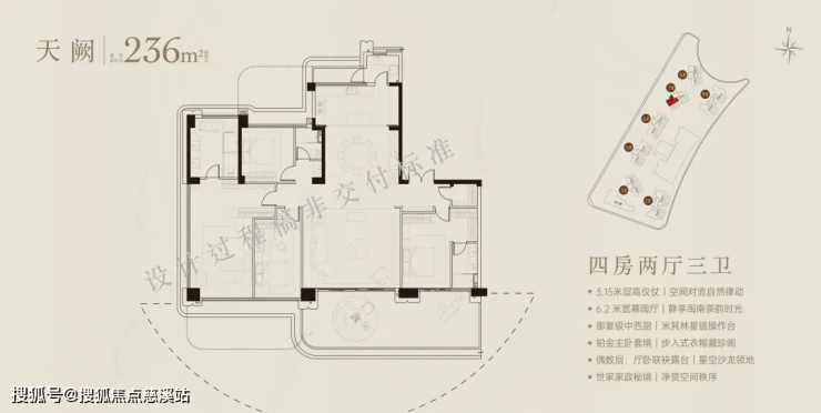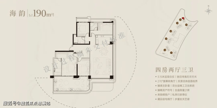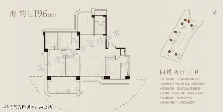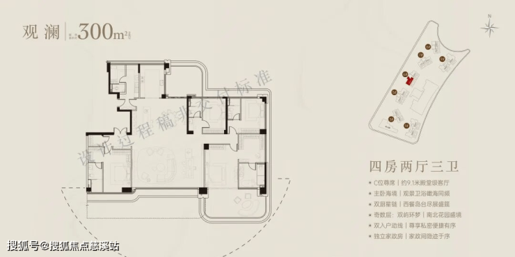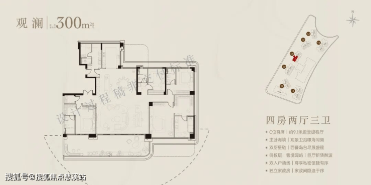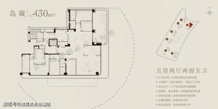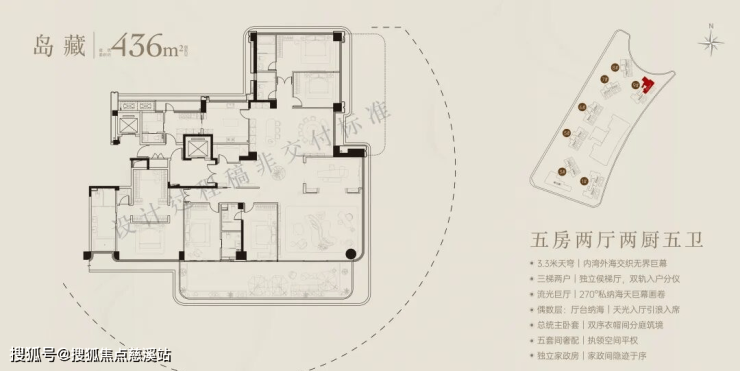 全盘仅规划274套纯粹大宅,户型面积段为191–436㎡,前排主力为346–436㎡环幕超大平层,后排为191–300㎡改善型大户,全部为第四代私定奢装大宅,仅16席的436㎡环幕大宅,坐拥270°全景视野,堪称“鼎豪之王”。