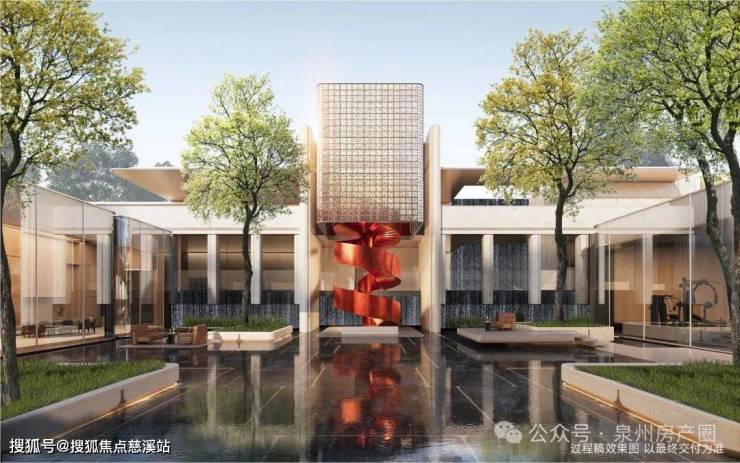 园林景观,溯源了泉州海丝黄金时代的历史,以泉州非遗为灵感,打造神性镜泊、刺桐云阶等主题园林,大面积的运用静逸水景,打造千万级艺术大师的高定叠水景观。