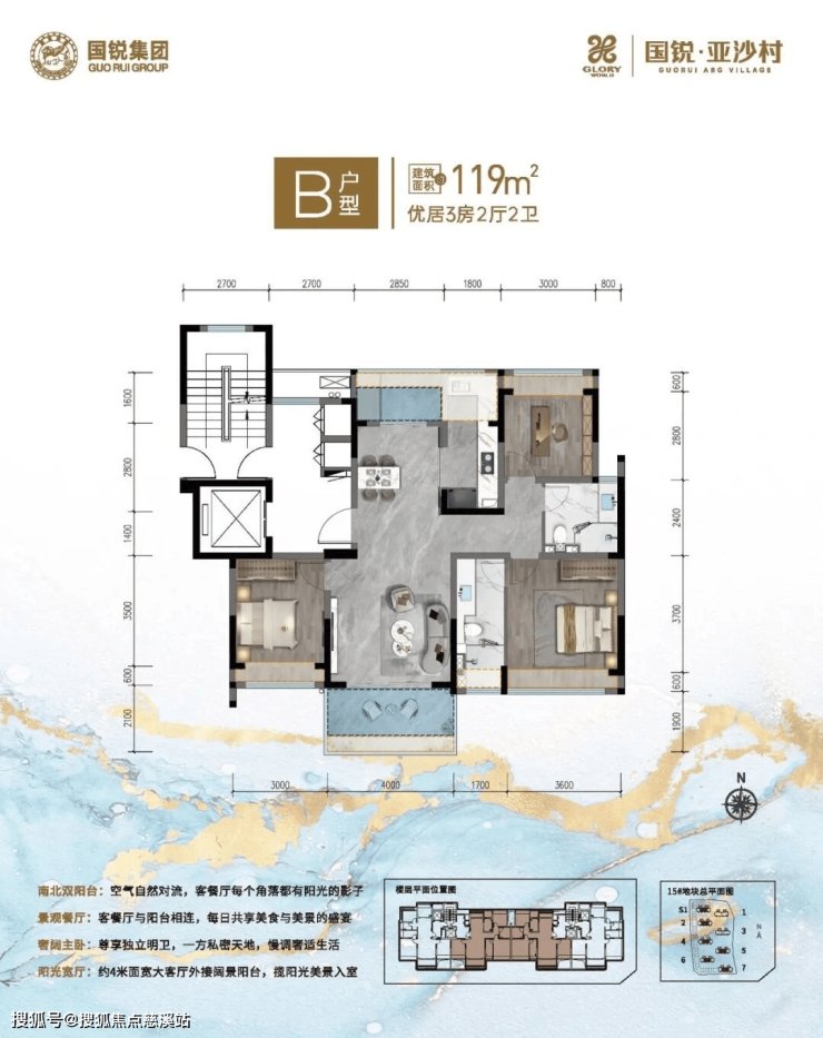 ·B户型:建面约119㎡ 优居3房2厅2卫