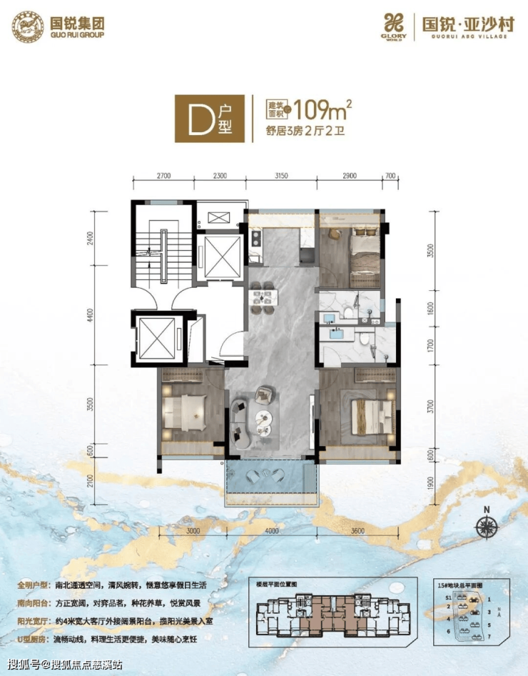 ·D户型:建面约109㎡ 舒居3房2厅2卫