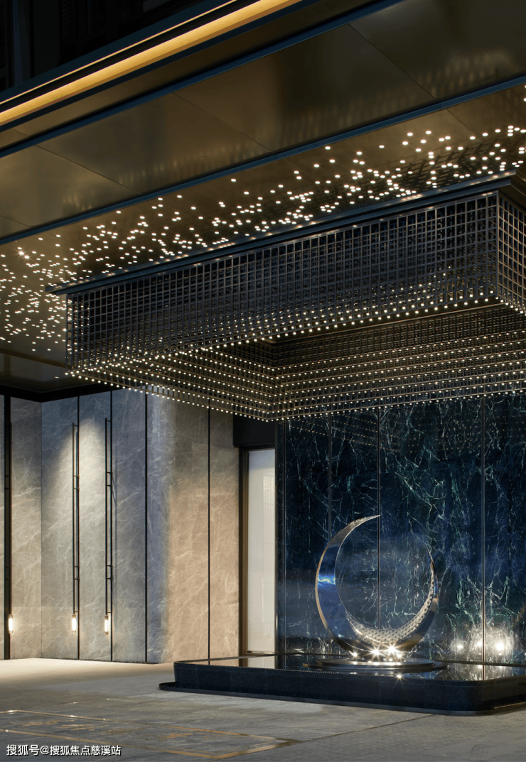 数十次图纸的推倒重来,几十轮工艺的反复比对,只为锻造一个简约而不失内涵的酒店式归家场景。劳斯莱斯幻影级的星空顶,将星穹垂落于归家者的头顶;意大利普拉达绿奢石,以大地深沉的华彩铺陈基底;仿斗拱、天井、月环雕塑、序列宫灯……东方骨骼与西式奢想在此交融。步入其中,1190颗匠人手工镶嵌的灯珠,于天井之上勾勒星宿图景,藏蓄财禄,更诠释着天、地、人和谐共生的人居理想。