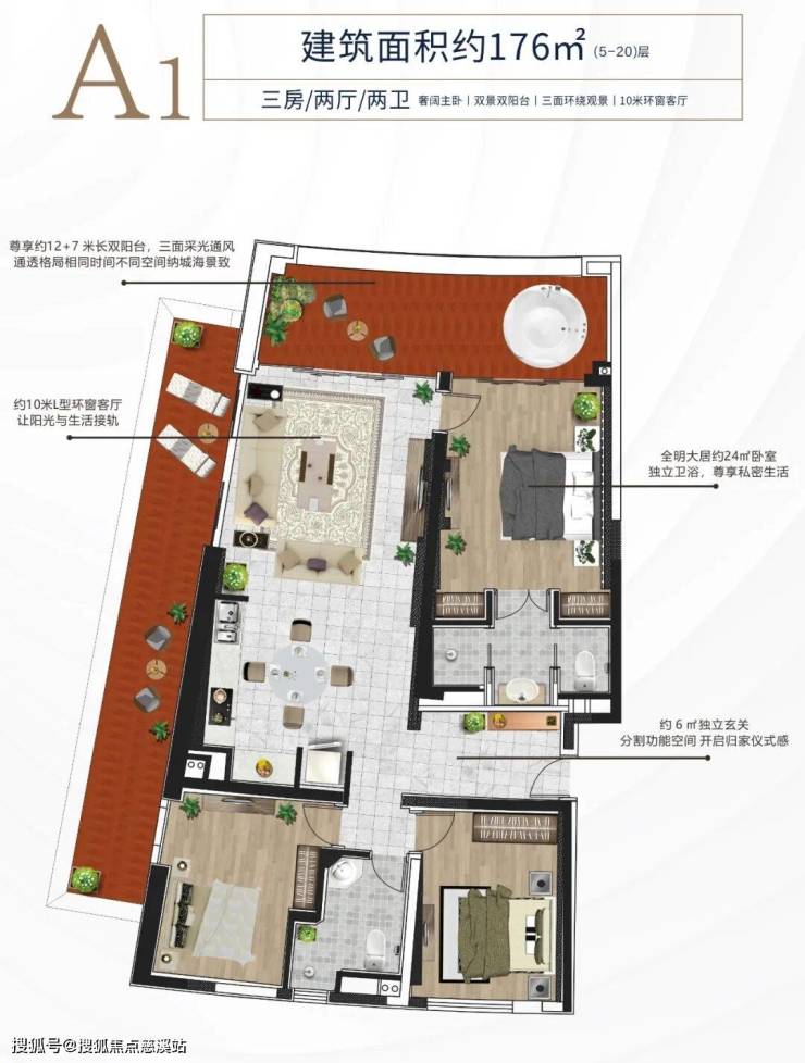 B1户型约186-209平方米 两房两厅三卫大阳台