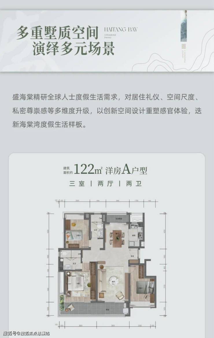 盛海棠依托于仅1.2超低容积率,于寸土寸金的海棠湾,呈献一片私飨自然的天地。每一户均配备私属温泉,富含矿物质元素,足不出户即可享受自然赋予的沉浸式SPA。