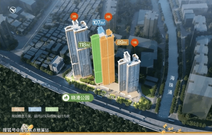 项目西南向是城市绿肺晓港公园,东面高层户型还能眺望珠江和广州塔。