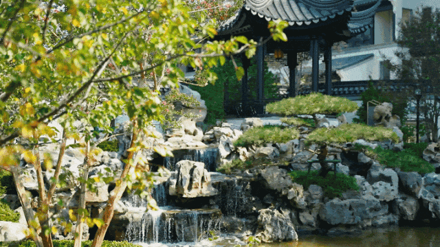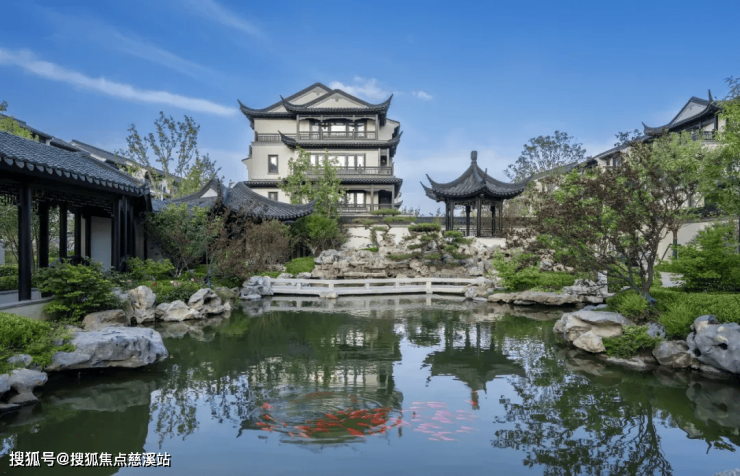 约43万㎡的水西雲庐,有22万㎡园林。7座江南风韵的中式园林,构成社区的“骨相”,建筑反倒像从中生长出来的。
