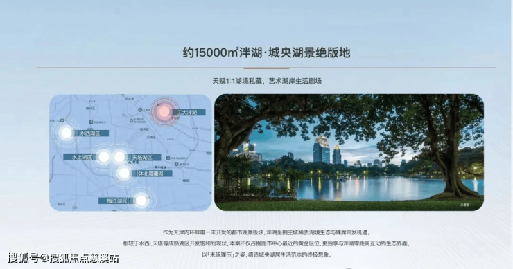 城央稀缺湖景,内环畔最后一个未开发的都市湖景板块,3.6万方泮湖公园,缔造城央湖居生活范本。