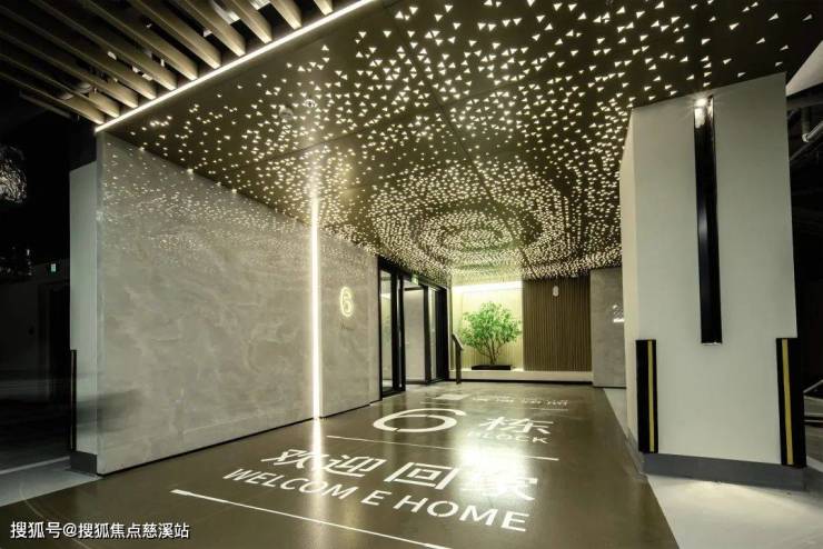 坡道线性灯+透光金属网强化仪式感,主车道灯光导视,泛大堂端景模拟自然光绿植造景,将酒店式归家礼仪延伸至地下空间。