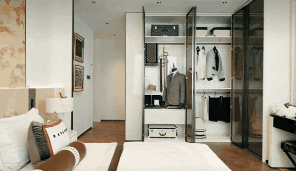 奢华感拉满的主卫,美妆冰箱、智能马桶等配置,堪比五星级酒店套房,这才是顶奢户型该有的生活质感。